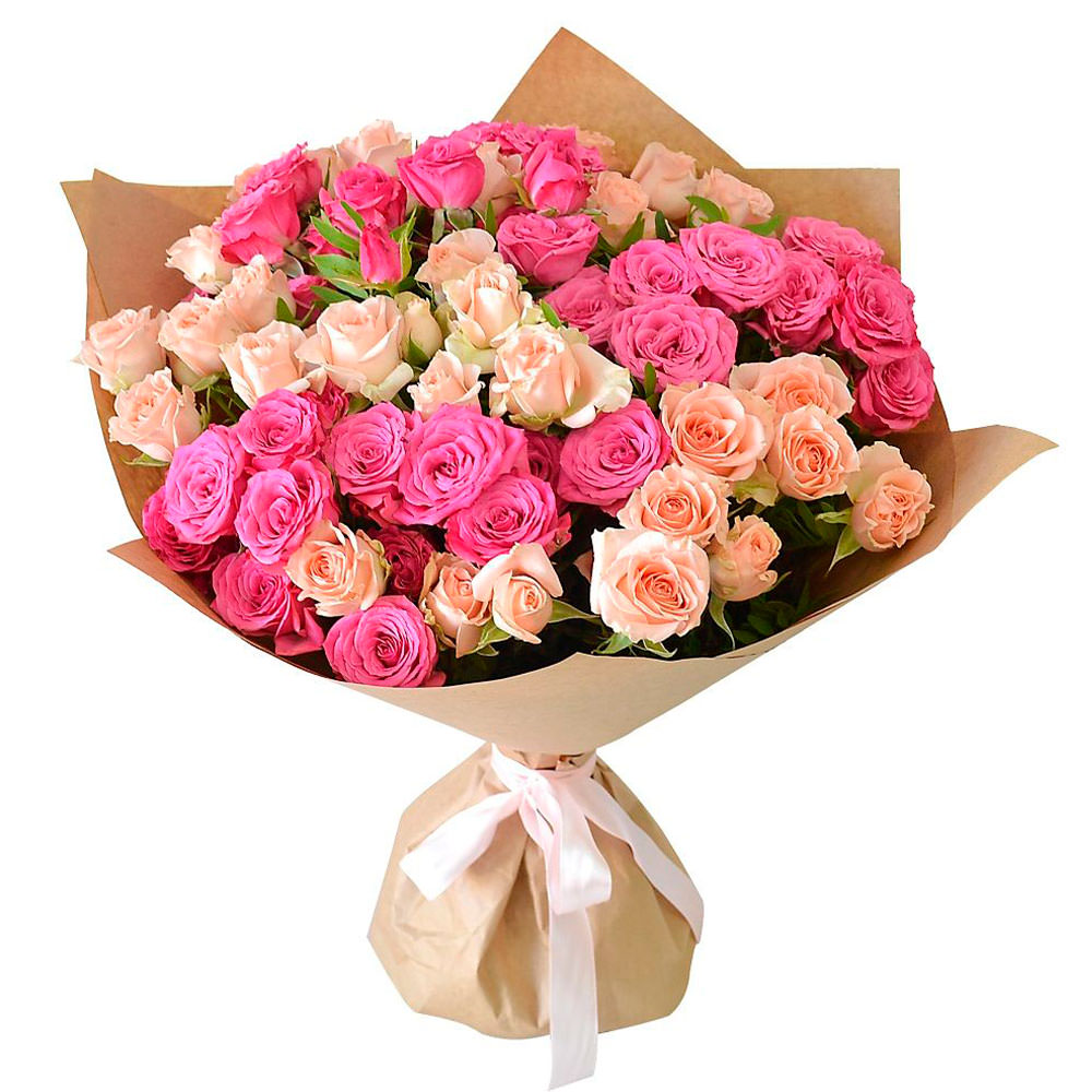На фото представлен образец. Объем букета зависит от выбранного вами размера. Точное количество цветов и цветовую гамму вы можете уточнить у менеджера по телефону.