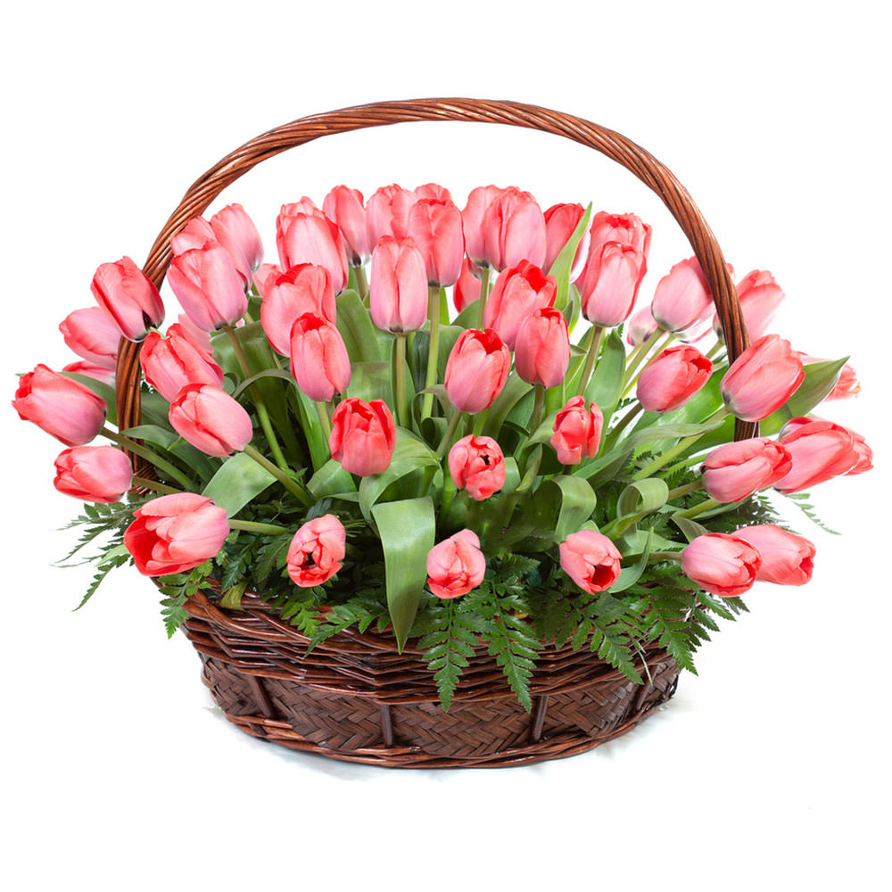 Цветы в корзинке «Розовые тюльпаны»